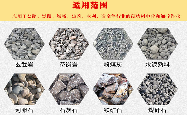 【適用物料】:河卵石、鵝卵石、石灰石、山石、青石、風(fēng)化砂、玄武巖、花崗巖、石英、輝綠巖、鐵礦石、混合碎石等200多種物料。